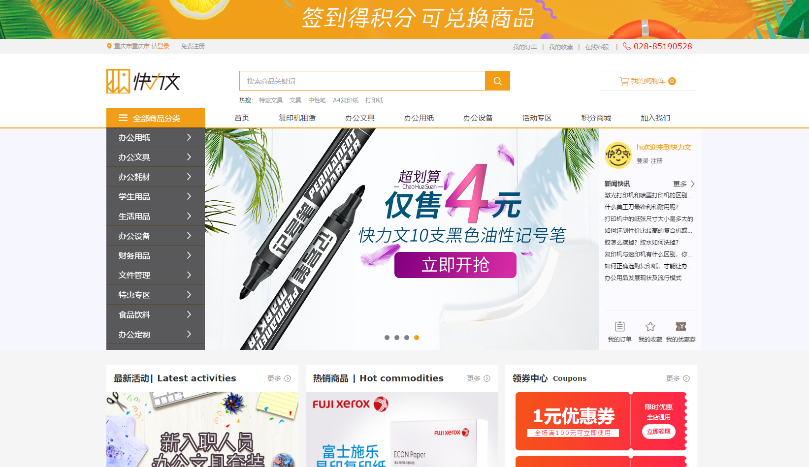 快力文办公用品公司,成都地区专业从事办公用品、清单及价格、办公用品采购配送的贸易公司,主营办公用品、文具、纸张批发销售、办公设备租赁与维修等